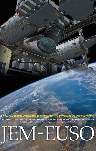 Tisce nabitch astc naraj na Zem, kad sekundu, na kad ksok jej povrchu. Ide o kozmick iarenie. Ich intenzita kles so zvyovanm energie astc. Oakva sa, e prichdzajce nabit astice s energiami nad 410^19 eV bud odtienen stratami spsobenmi kolziami s mikrovlnnm pozadm vesmru. Po objaven astice s energiou 10^20 eV(*) v 1962 J. Linsleym, bol tucet novch astc s podobnmi energiami spozorovan v 90. rokoch projektom Akeno-Giant-Air-Shower-Array (AGASA) na Univerzite v Tokiu a Flys Eye/Hi-Res Experimentom na Univerzite v Utahu. Pvod vysokoenergetickch astc je neznmy a fascinujci, a u desaroia pta znan vedeck zujem. Kozmick iarenie s ultra vysokmi energiami nad takzvanm Greisen Zatsepin Kuzmin (GZK) limitom (>6x10^19 eV) efektvne interagujce s mikrovlnnm pozadm vesmru. Vaka tejto interakcii strca energiu a na vzdialenostiach v rdoch desiatok megaparsekov ju zni pod GZK limit. JEM-EUSO experiment JEM-EUSO (Japanese Experiment Module - Extreme Universe Space Observatory) experiment je projektovan na konen vyrieenie GZK-tienenia a na identifikciu pvodu UHECR astc. JEM-EUSO me poas svojej poas trojronej misie na Medzinrodnej vesmrnej stanici zaregistrova a 1000 astc s energiou nad 710^19 eV. Energia astc a smer ich prchodu bud meran s vysokou presnosou s cieom objasnenia pvodu ultra vysokoenergetickch astc. JEM-EUSO teleskop nie je smerovan do vesmru, ale dolu smerom k zemskmu povrchu. Zatia o ben astronomick observatrium vzhliada zo Zeme k vesmru, JEM-EUSO pozoruje vesmr sledovanm zemskej atmosfry. Tto sa tak stane najrozsiahlejm doposia vyuvanm detektorom v naom skman pvodu tchto nezachytitench astc prichdzajcich z vesmru. Plnovan tart a zaiatok meran misie spadaj po roku 2020. Na JEM-EUSO experimente pracuje 93 vskumnch intittov z 16 krajn. Slovensko je lenom JEM-EUSO kolaborcie od roku 2008. Prpravn experimenty - EUSO-SPB baln - EUSO baln - Mini-EUSO (*) 10^20eV : 16 Joulov energie, tto me zohria 1 centimeter kubick vody o 4C |